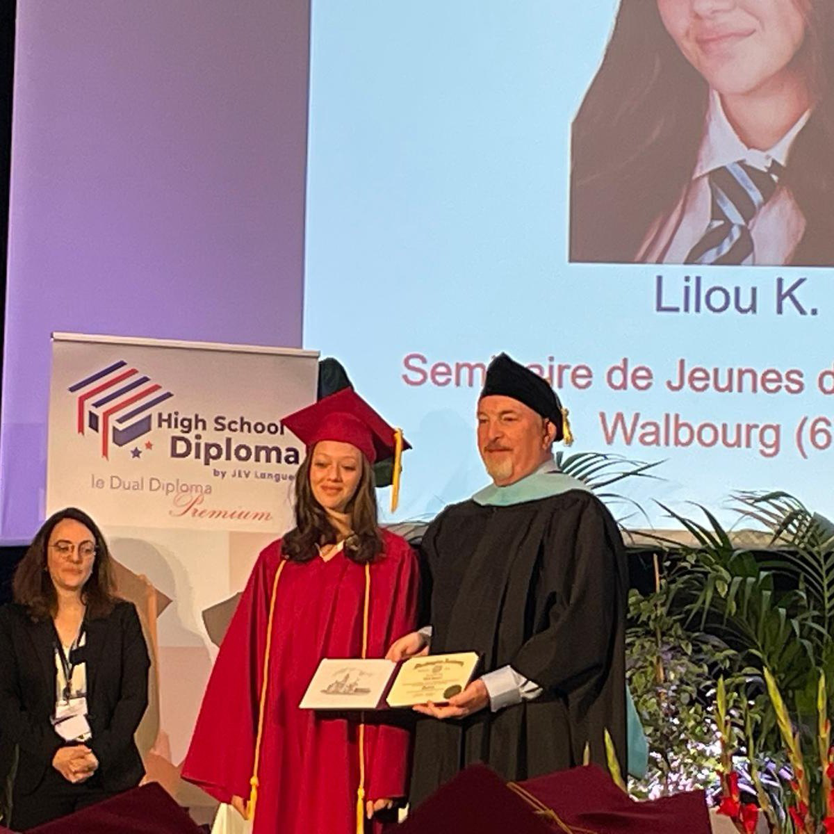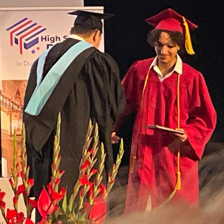 Un grand honneur, M. Judson McBrine, Proviseur de la Washington Academy (Maine, USA), a fait le déplacement pour leur remettre leur diplôme en main propre, lors d’une cérémonie organisée par notre partenaire JEV Langues.
